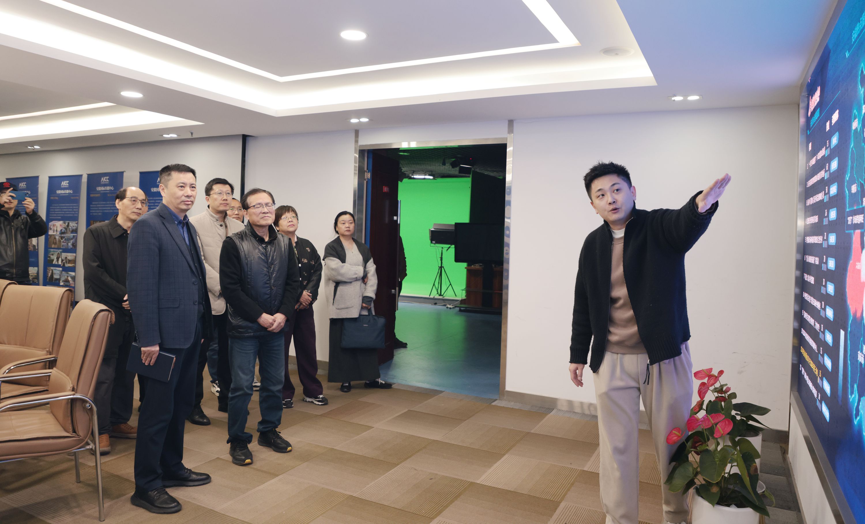 11月18日,,,,安徽省康健文化旅游工业增进会执行会长、秘书长虞海宁一行到冠军国际调研交流。。。冠军国际党委副书记、副董事长、总司理陈宝红,,,,集团党委委员、副总司理吴雷和相关部分认真人陪同调研。。。
